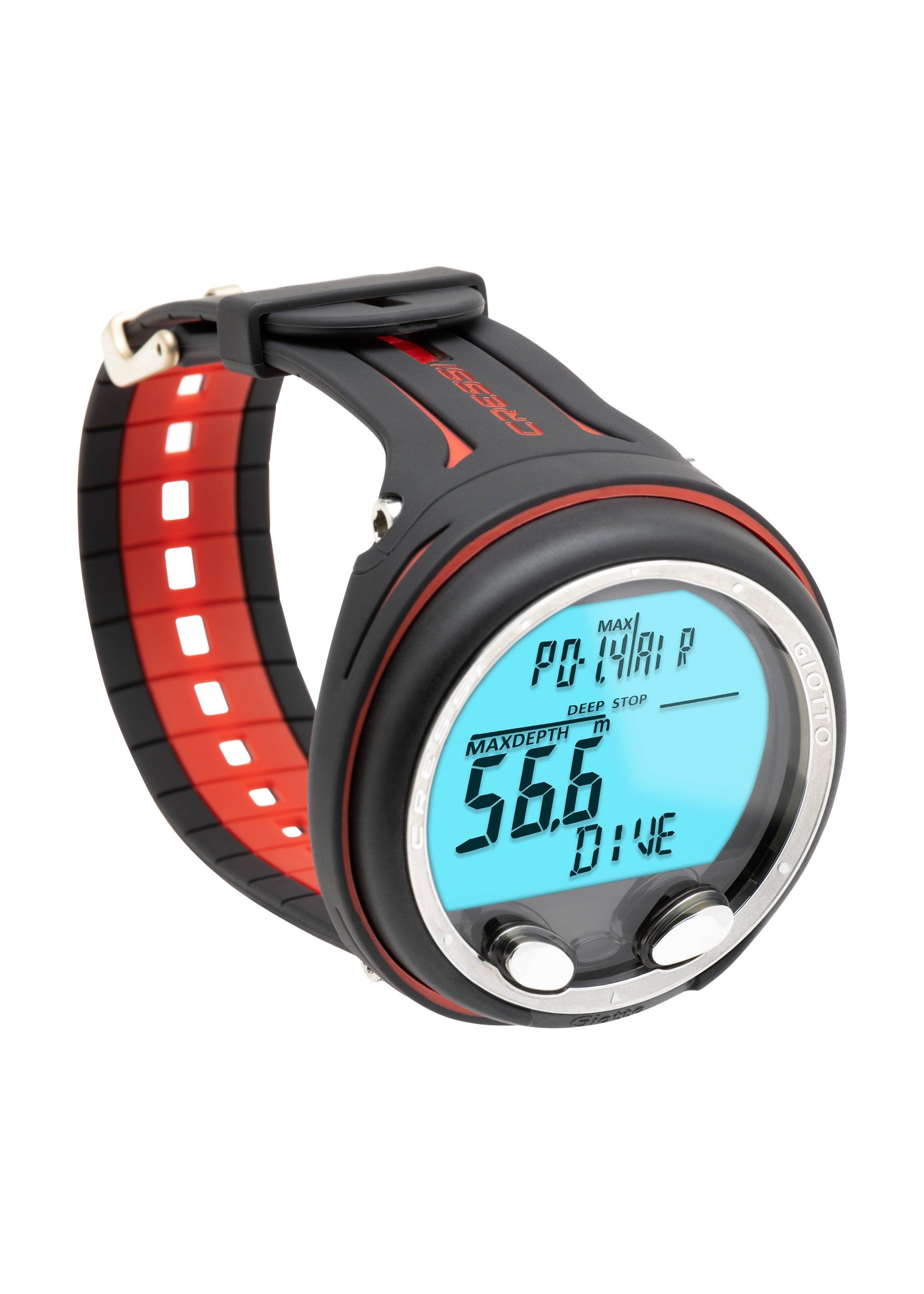 Il Giotto aggiornato beneficia ora di una semplice navigazione a due pulsanti, che consente di accedere a quattro diverse modalità operative: Aria, Nitrox, Gauge e Free.