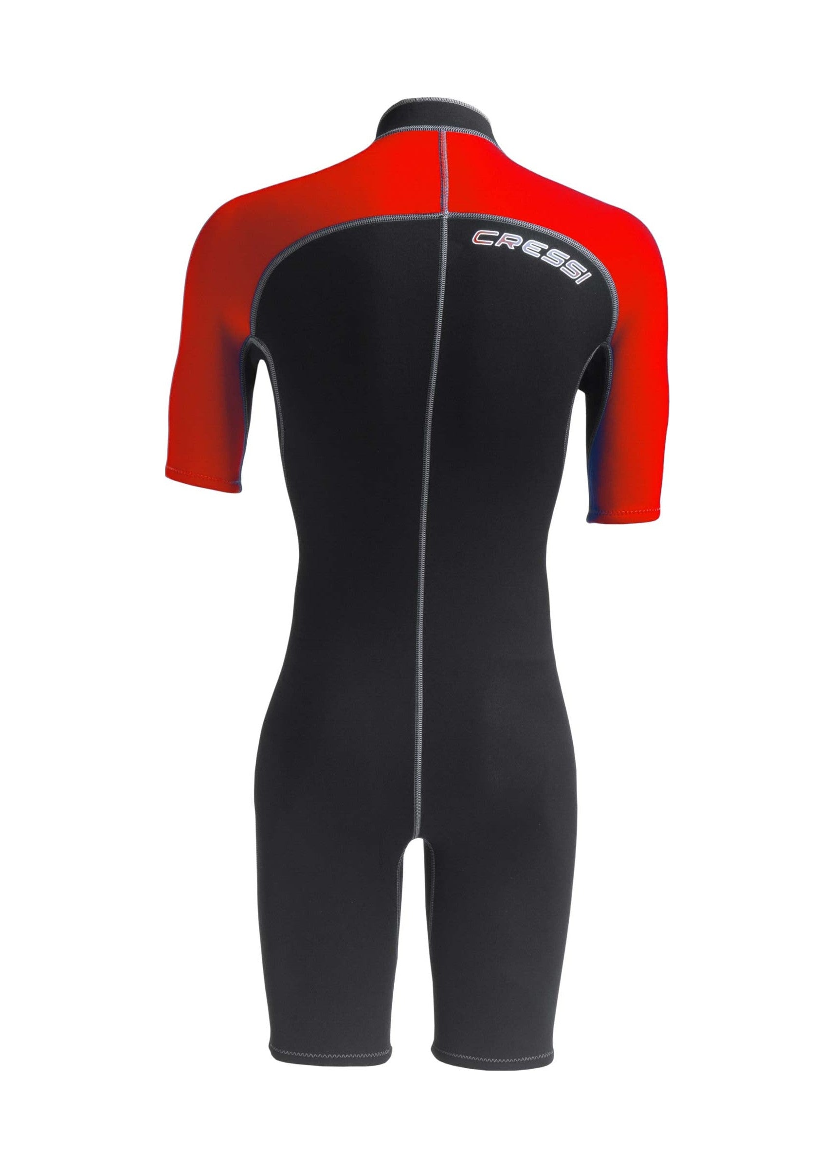 E' una muta monopezzo senza cappuccio, con pantaloncini e maniche corte, in neoprene bifoderato da 2 mm.