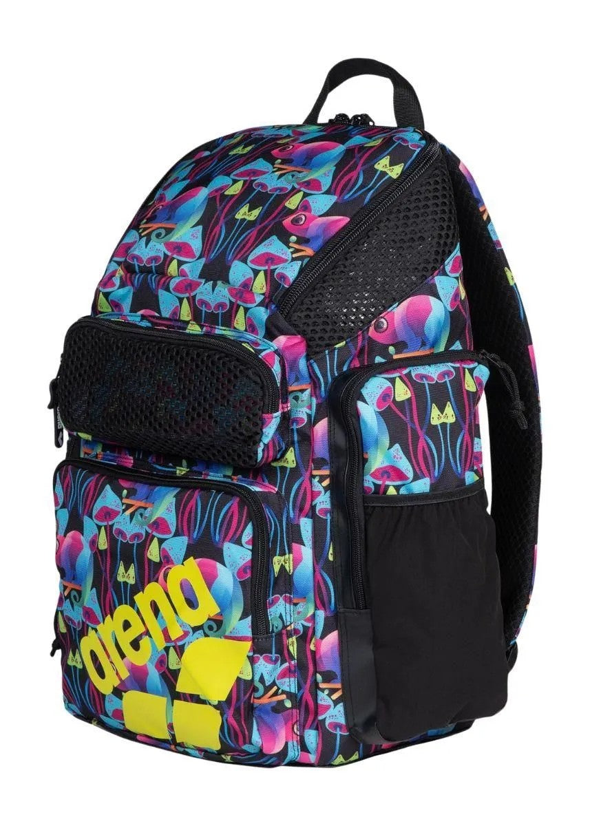 Fatti notare con lo zaino Arena Multi Chameleons One Go 45 L. Decorato con camaleonti e funghi fluo su uno sfondo nero, questo zaino capiente unisce l'esperienza tecnica di Arena a un design dalle linee decise.