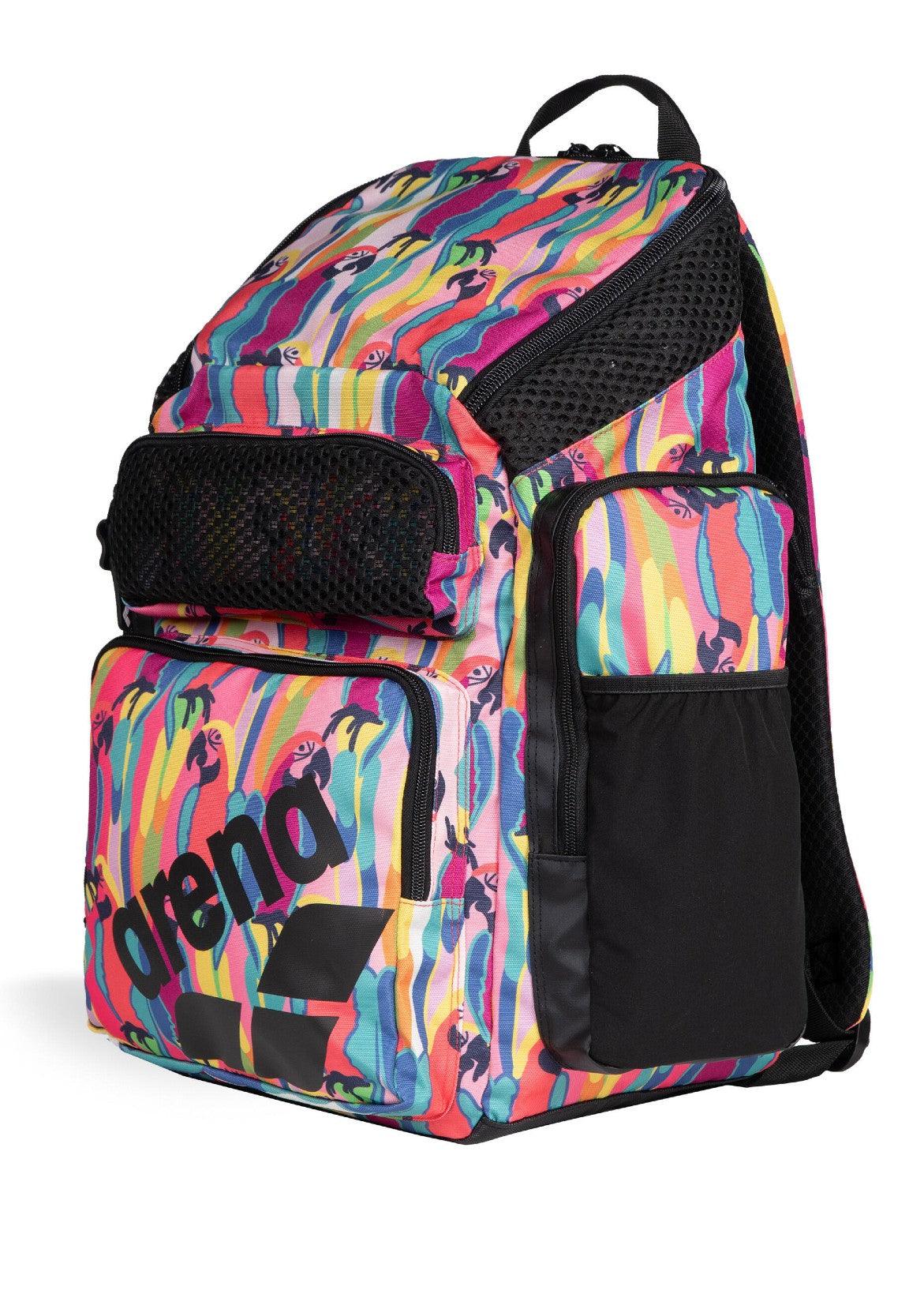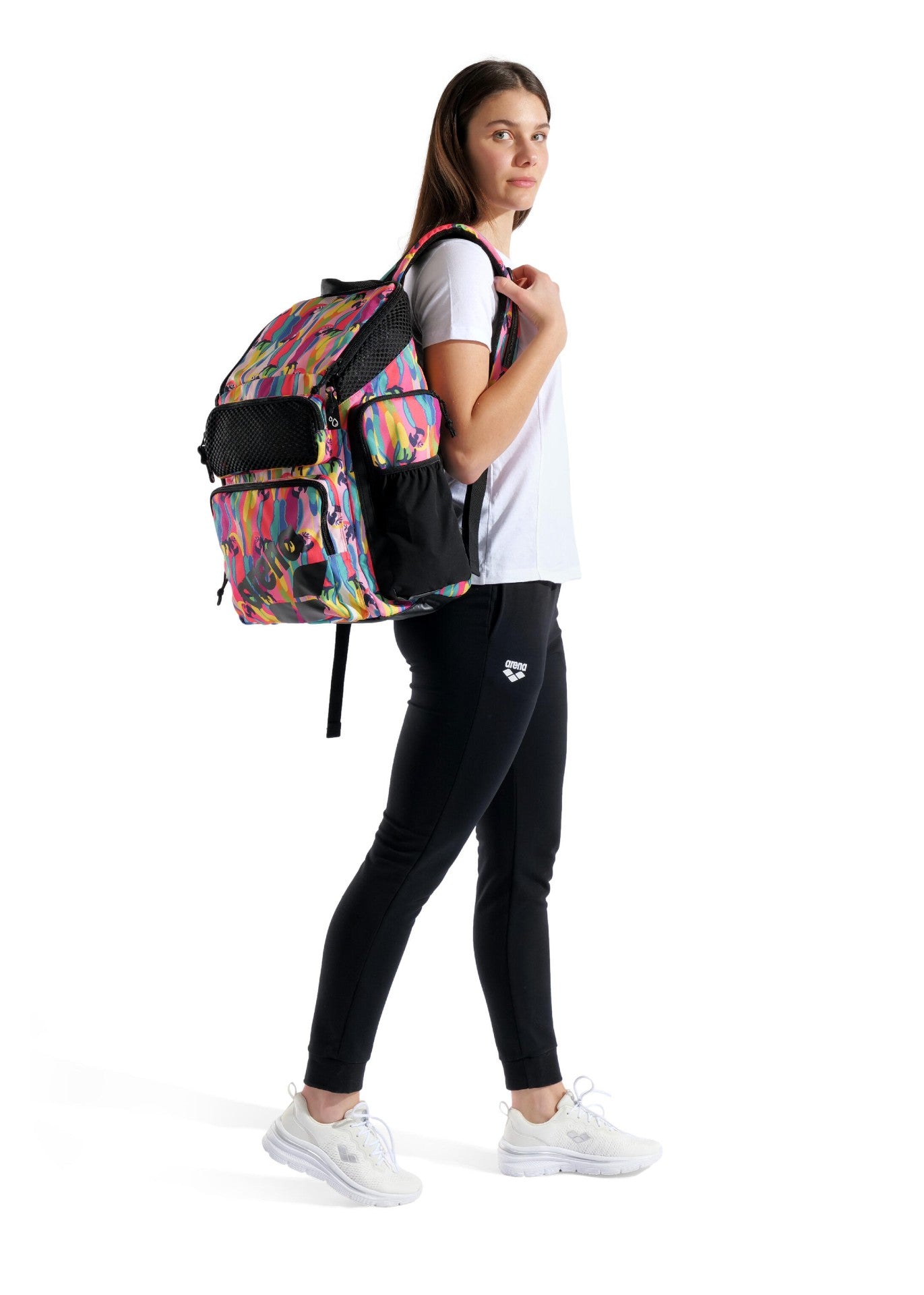 Fatti notare con lo zaino Arena Tropical One Go 45 L. Decorato con camaleonti e funghi fluo su uno sfondo nero, questo zaino capiente unisce l'esperienza tecnica di Arena a un design dalle linee decise.